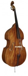 Polo-profesionálni kontrabas, smreková masívna vrchní doska, javorová masívna spodná doska a luby, krk javor, garnitúra eben, plochá spodní doska, struny Saturn
